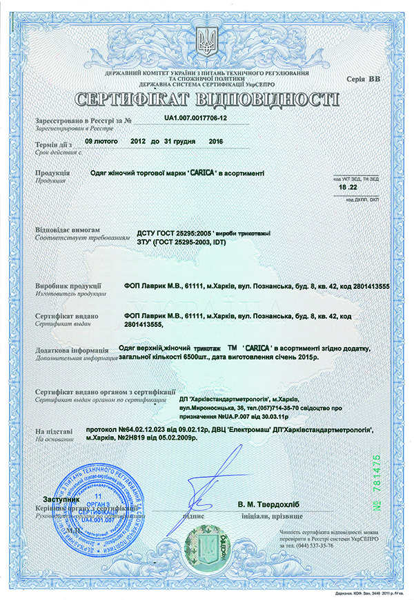 Зверніть увагу! В зв'язку з вимогами фабрики, повернення по торговій марці Carica не приймаються